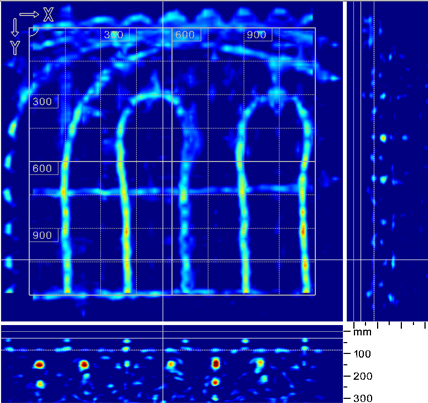 Rakenneskannerin suurin tutkimussyvyys yhdeltä puolelta on 300mm ja kahdelta puolelta jopa 600mm paksuja rakenteita. 2D- ja 3D-kuvia pystytään tutkimaan työmaatietokoneella ja PC:n laajemmalla ohjelmistolla heti työmaalla.